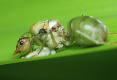 - การให้อาหารแก่กันของมด มีลักษณะคล้าย มดจูบกัน (kissing) โดยมดตัวที่มีอาหารจะสำรอกอาหารออกมา แล้วมดตัวที่ต้องการ อาหารจะยื่นปากเข้าไปประกบเพื่อรับอาหาร